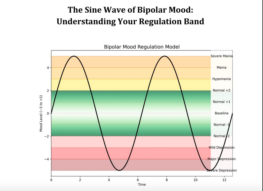 If you live with bipolar disorder—or support someone who does—you know mood can feel like a tide: it rises, it falls, it has momentum. That’s why a simple picture can be powerful. In this guide, we use a sine wave (think of a smooth, curving line that rises and falls) to represent the natural rhythm of mood. Through the center of that wave runs a level line: your baseline, or “typical you.”